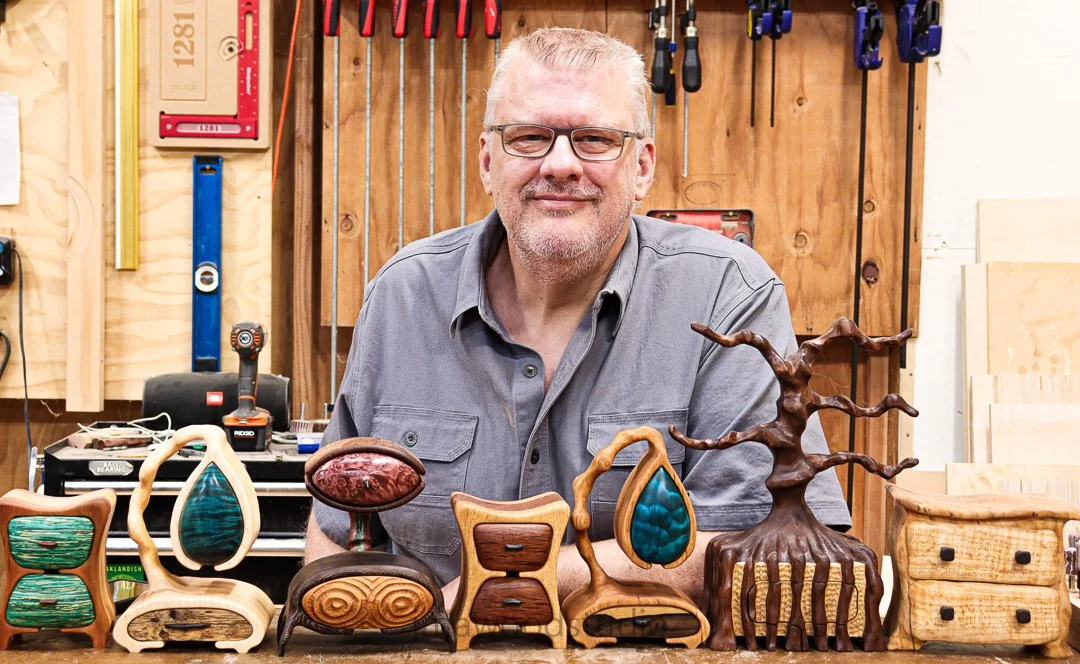 Over the past several years, I’ve gone deep into the creative world of bandsaw boxes — blending traditional woodworking with carving, color, resin dyes, and experimental forms. What started as a curiosity turned into a passion for exploring shapes, woods, and textures that push the boundaries of what a box can be.